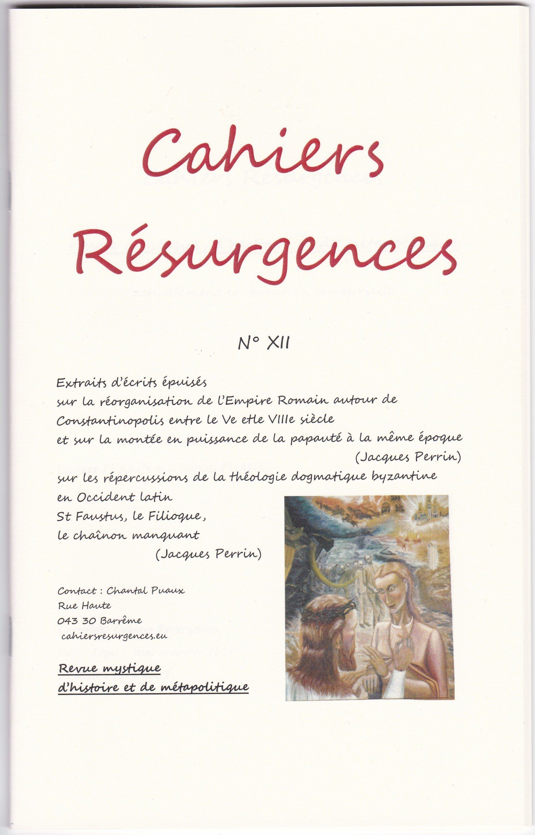 (n° IX et XV-XVII ainsi que les n° III,IV, V des Cahiers Résurgences) par Jacques Perrin